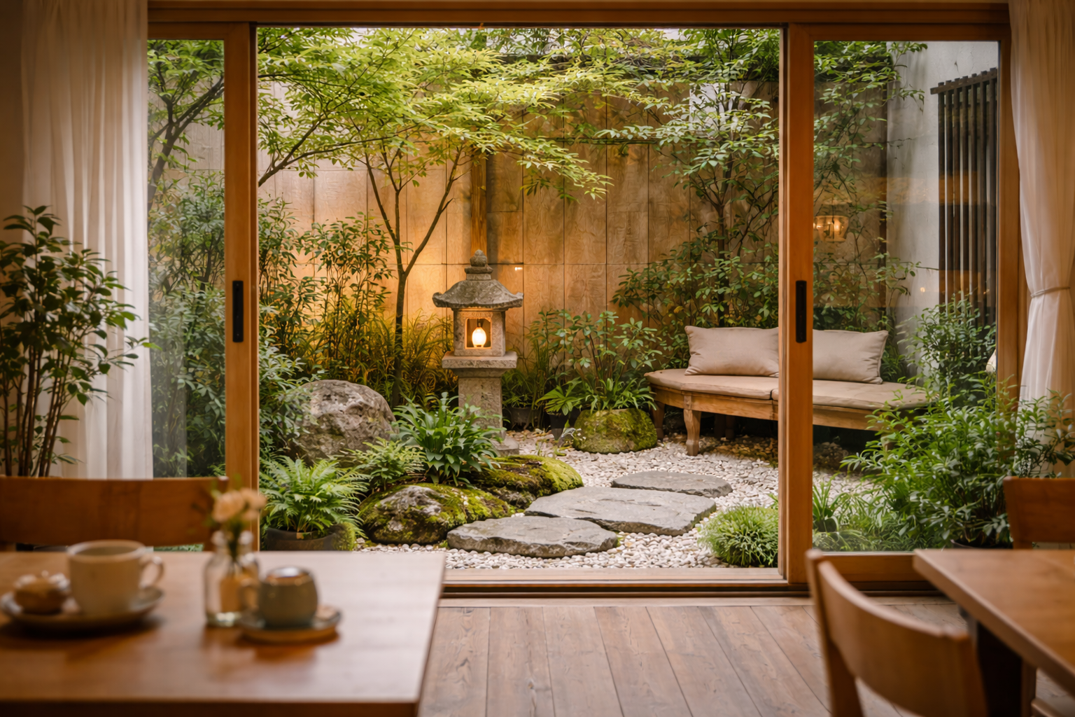 店の奥には小さな中庭があり、やわらかな光や季節の移ろいを感じながらお過ごしいただけます。