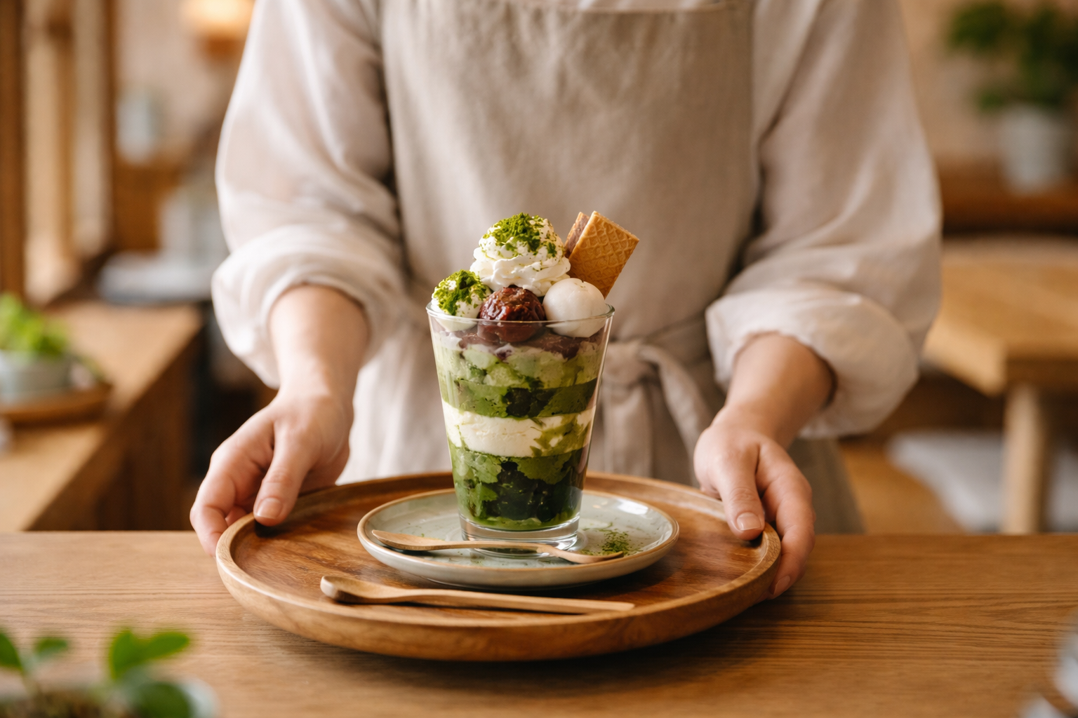 KOTOのスイーツとドリンクには、香り豊かな宇治産の抹茶とほうじ茶を使用しています。