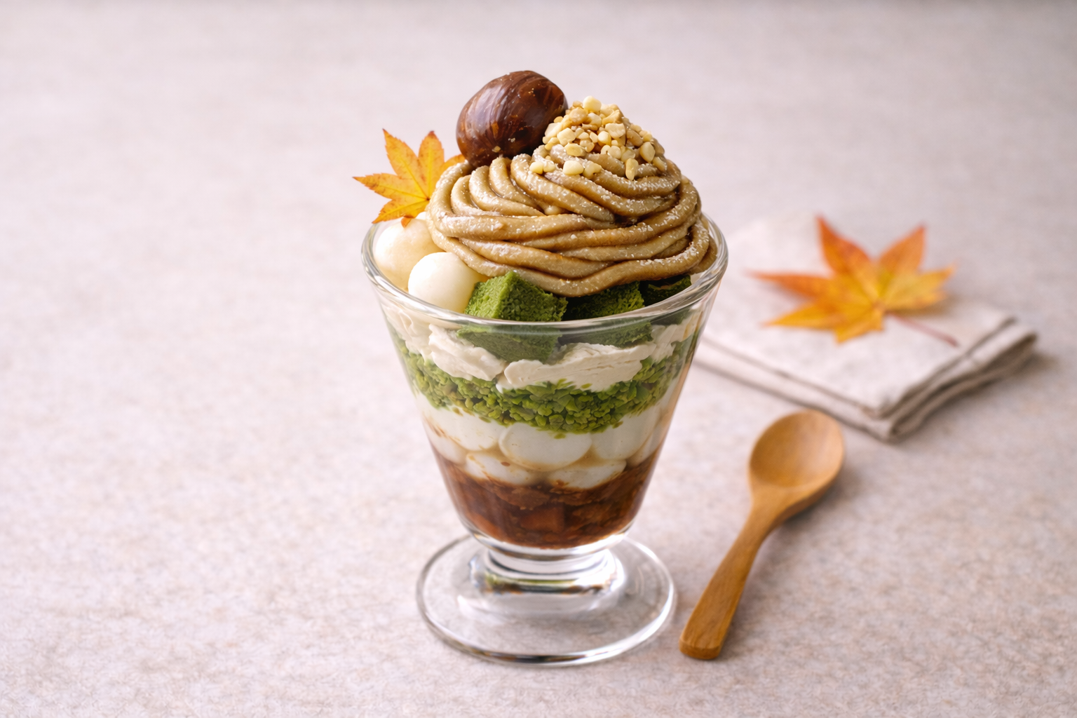 抹茶やほうじ茶、季節の素材を使ったスイーツやドリンクをご用意しています。